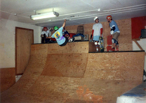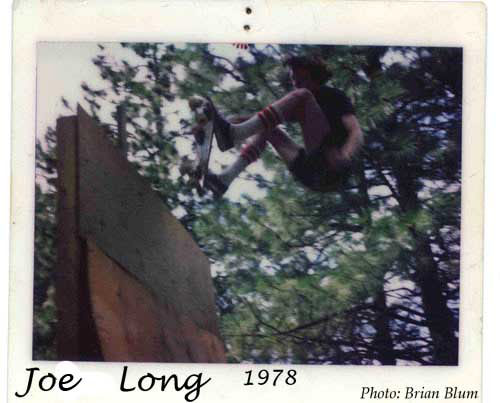 Brian skated in the Spokane Valley, 1978, this looks like the crew. Notice the 8 foot wide, no flat half-pipe. Skateboarder magazine printed plans, right in the magazine at the time, and many of us copied them and built this exact ramp. (Click photo for larger image).