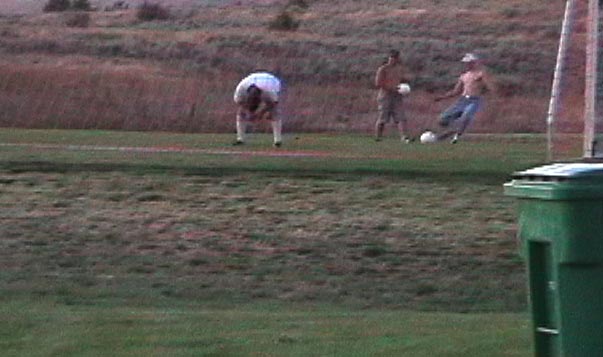 After skating for a couple of hours, the sun was going down, we decided it was time to go. While we were packing up the car, there were these two guys trying to hit their buddy with a soccer ball in the butt, while he was bending over making himself a target. We were laughing so hard, because, they couldn't even hit him. I guess this is what non-skaters do for fun in Klamath Falls.