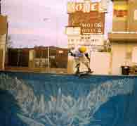We made it into Fresno about 10 PM, and we decided to look for the pool. We had directions, but they were bogus. They led us to an already fully functioning Vagabond Hotel. Not what we were looking for. Joke was on us. We hit the road. Steve seemed to think that he could remember where it might be; we drove for a couple of hours, and pretty much wasted our time looking for pools that weren't there. The Persuader was making a clicking sound that stops when the brakes were pressed. This made it difficult to be in a stealth mode, which is important when looking for pools (Stealth mode with a 24 foot motor home? Yeah right!).