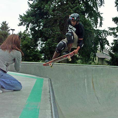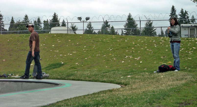 After skating Crossroads, we headed up to Arlington. Which took about an hour and a half to get there because of traffic. Kim took this shot of me doing a "J" slide.