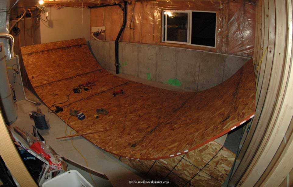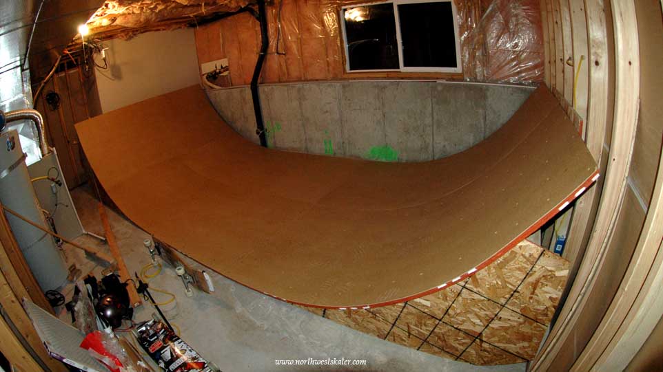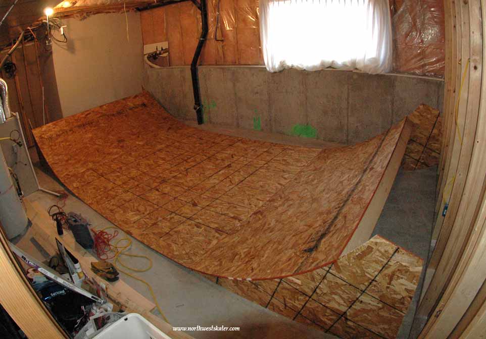 Finished with two layers of 7/16 inch chip board, and one layer of masonite.