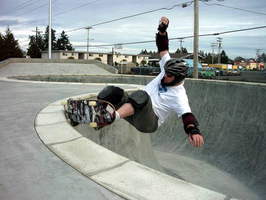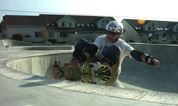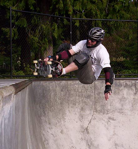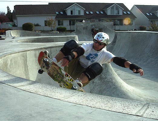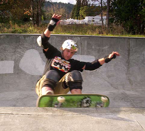 We didn't know if we would have enough dry weather to pick and choose which park to go to. So, we went to the best park on the mainland, Arlington. Kerry was getting some big air. Kerry's board comes from the Team LSD folks in Forida.