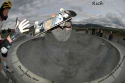 We met three guys Rick, Marshal and Andy, from Park City, Utah who were pulling some huge airs, and nice lines. We had a great time exchanging stories and skating the Butte, MT park.