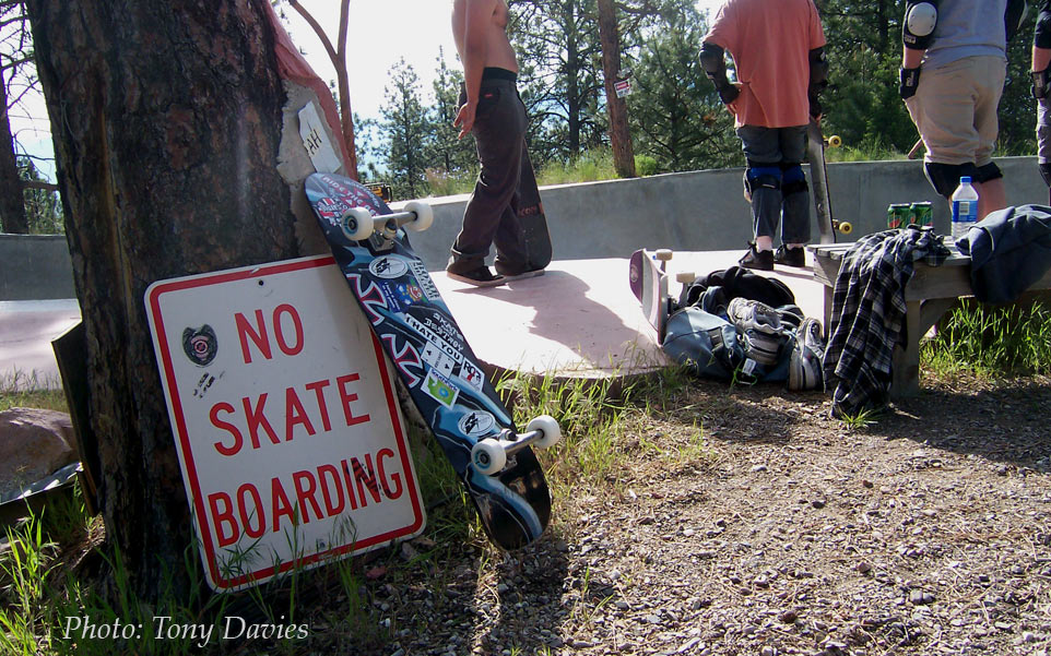It's only about an hour or so to Whitefish, so it didn't take long. And on the way we got word, once again via cell phones, that whitefish was now dry and ready for the rip ride! That was music to our ears. Getting rained out of Polson was a real downer for us. A couple of us really wanted to skate Polson. So, getting rained out really dampened out spirits.