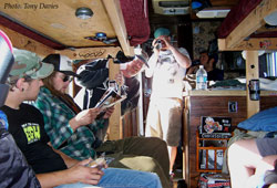 We planned on leaving at 5pm, and low and behold, we left pretty much right on time. This particular crew was motivated, and ready to go. I had worked on the Persuader to get her ready for the trip. In addition to the usual oil change and check-up, I patched up a leaky roof, and added some killer lights that allowed for reading while it was dark.
