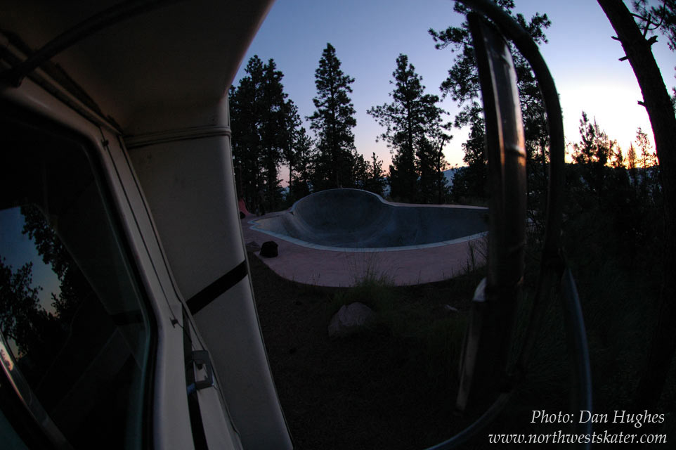 The drive went OK, there was plenty of rain along the way, and some questioned whether it would be dry. We arrived in Kettle Falls around 3pm or so and it was completely dry. There was plenty of time for a good session. We pulled up and were treated like celebrities. It was great fun. The little bowl at Kettle Falls has 4 sections, which cover different skill levels of bowl riding. It was also fun watching the snake session ensue as everyone wanted to ride.