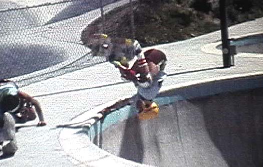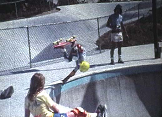 I was able to visit this California skatepark in '79, after I learned to ride vert. It was the only one I was able visit on this second and last trip, after our '77 disneyland trip. Doing a frontside air in the very long half pipe. I remember seeing this park in so many pictures in Skateboarder Magazine, I just had to visit it.