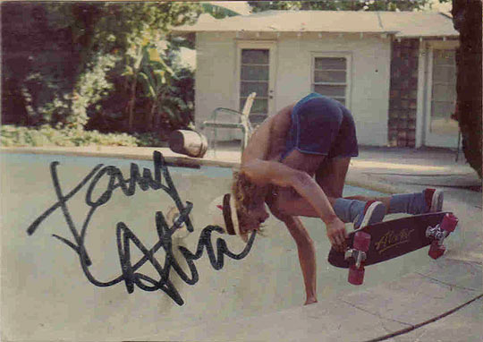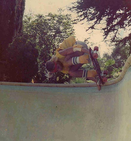 Finding pools in the Seattle area isn't easy. This one was going to be repainted, and Patrick and his buddies skated it. It had Disney Characters in the bottom, so they called it the Disney Bowl, circa 1977. Patrick is skating.