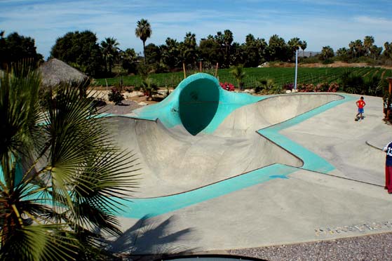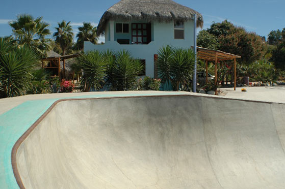 The town is Pescadero the Park is named "Kilometer 64 skate" (KM64 is the mile marker) It is about 45 minutes north of Cabo San Lucas on the road to Todos Santos. It is PARADISE. PHX to SJD is about $300.00 Rent a Car for $200 a week. Stay at the Park or at the Beach. AWESOME SITUATION. |