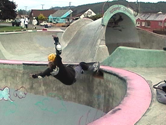 Steve getting some air at Reedsport. Nice big bowl do do that in. Not to mention a funnel to loop.