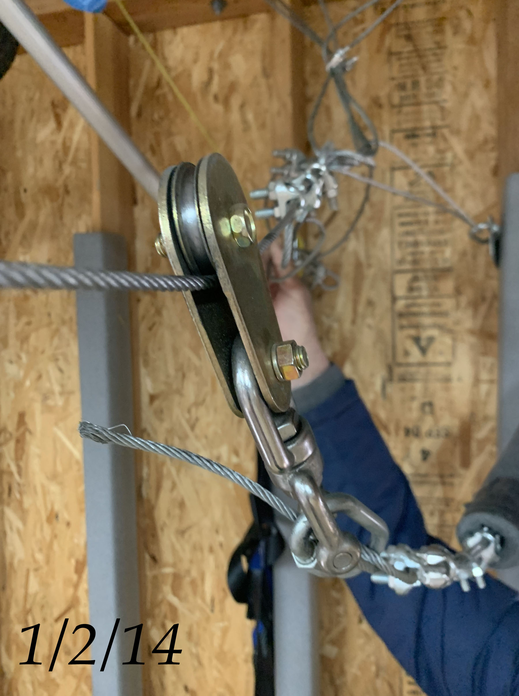 (Click photo for larger image).The harness connected to a pulley system was installed in 2014. This not only allowed June to learn to drop in, it still is a valuable learning tool. |