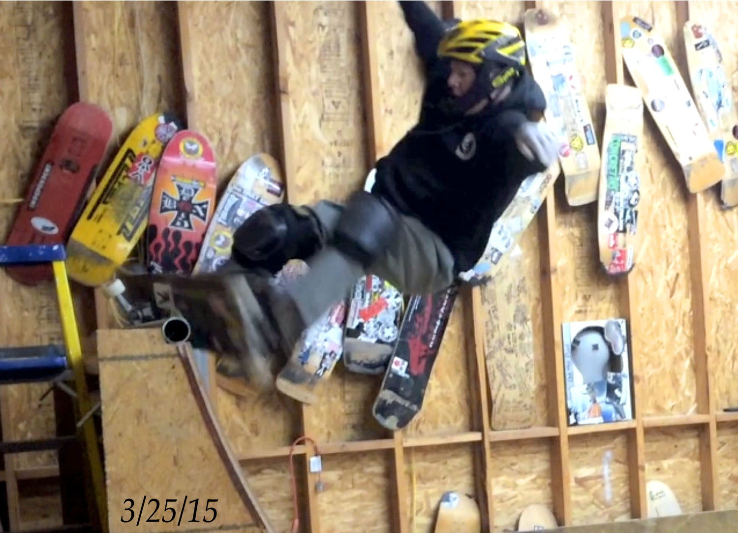 (Click photo for larger image).January 10, 2014 Mary came and visited us and skated our little training ramp. |