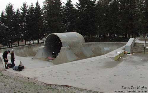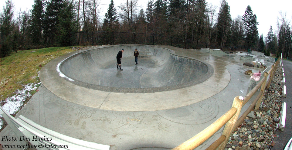 | For those keeping track, this was to be our third park and it was already 1:30pm. Not too good for a day long skatepark extravaganza! And on top of that, it took us close to an hour to dry out the Duvall bowl before we could ride, it wasn't just wet, but also cold. Notice the snow sitting around the bowl. Which was sort of comical.