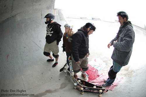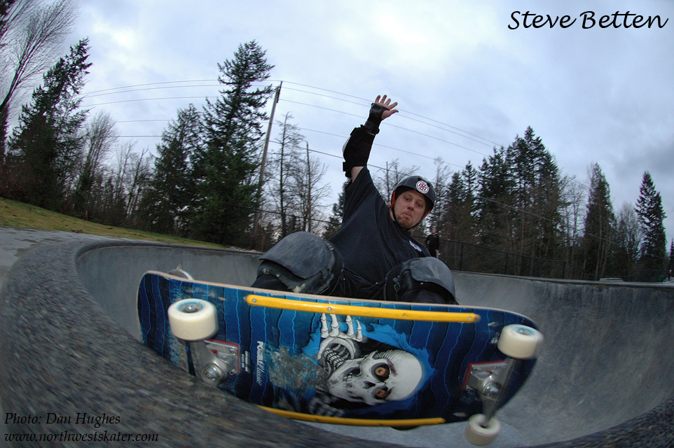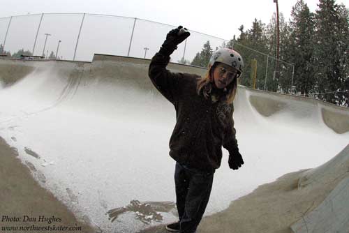 We were glad the rain/snow had stopped, and we got to skate even though it was partly wet. It was also nice that Steve showed up to help us grind some coping. Duvall is a fun bowl, and even though we were struggling to keep our feet dry we were glad we were out there skating.