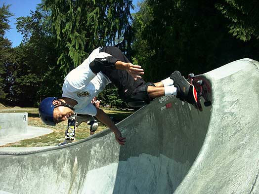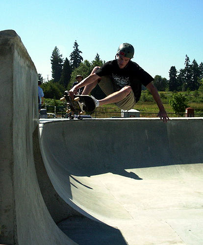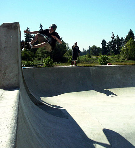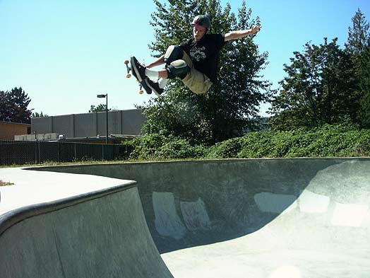 Their trip started in Sumner, however, I didn't snap any photos there...Here's Scott Tayor going over the door at Milton. Scott is the web editor for Skateboarder Magazine On line.
