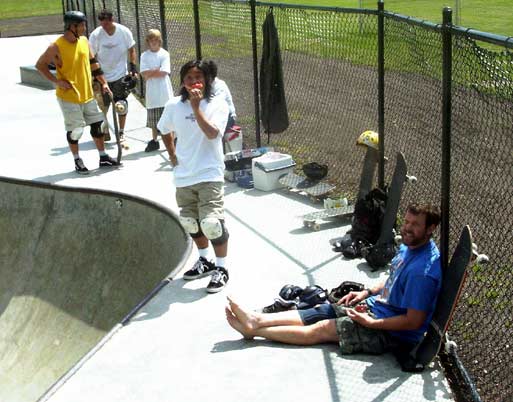 Hot day, good skatepark, and a good time to take a break for lunch.